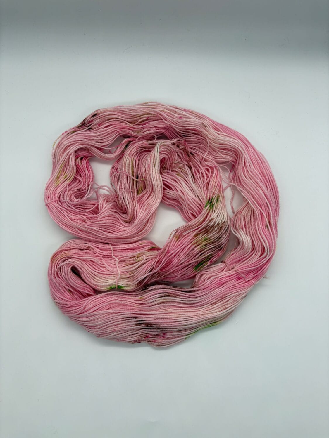 Unleash your inner strength with Demon Girl, a stunning hand-dyed yarn from Nerds With Needles in Nova Scotia. Inspired by Nezuko Kamado from Demon Slayer, this colourway captures her fierce spirit and gentle heart. Soft blush pink yarn with rich cherry, bamboo green, and deep brown flecks, echoing Nezuko’s iconic kimono and demon form. Each skein is artfully dyed by hand, ensuring no two are exactly alike – just like the balance of power and grace she embodies. Perfect for shawls, sweaters, or accessories that channel quiet resilience, Demon Girl weaves the beauty of humanity and the mystery of the supernatural into every stitch.