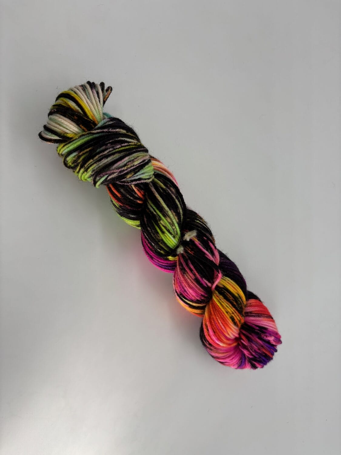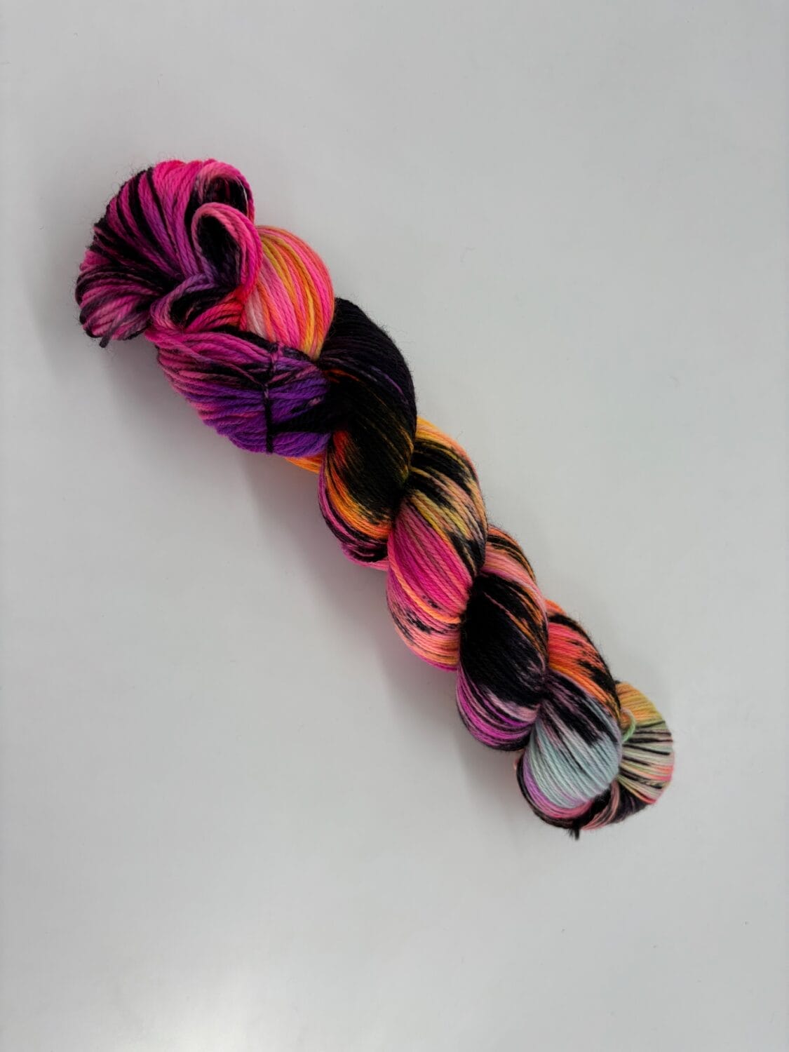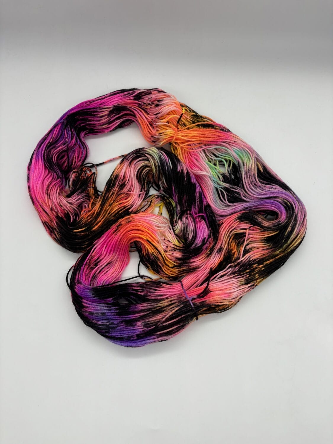 Enter the shadowed realm of fantasy with Disturbed Unicorn, a striking hand-dyed yarn from Nerds With Needles in Nova Scotia. Inspired by a darker twist on the mythical unicorn, this colorway blends moody purples, stormy grays, and flashes of iridescent pink—beauty with an edge. Each skein is hand-dyed to capture the tension between magic and mayhem, creating a palette that’s both haunting and mesmerizing. Perfect for bold shawls, statement accessories, or projects that dare to be different, Disturbed Unicorn proves that not all magic is glitter and rainbows—sometimes it’s wild, mysterious, and a little bit wicked.