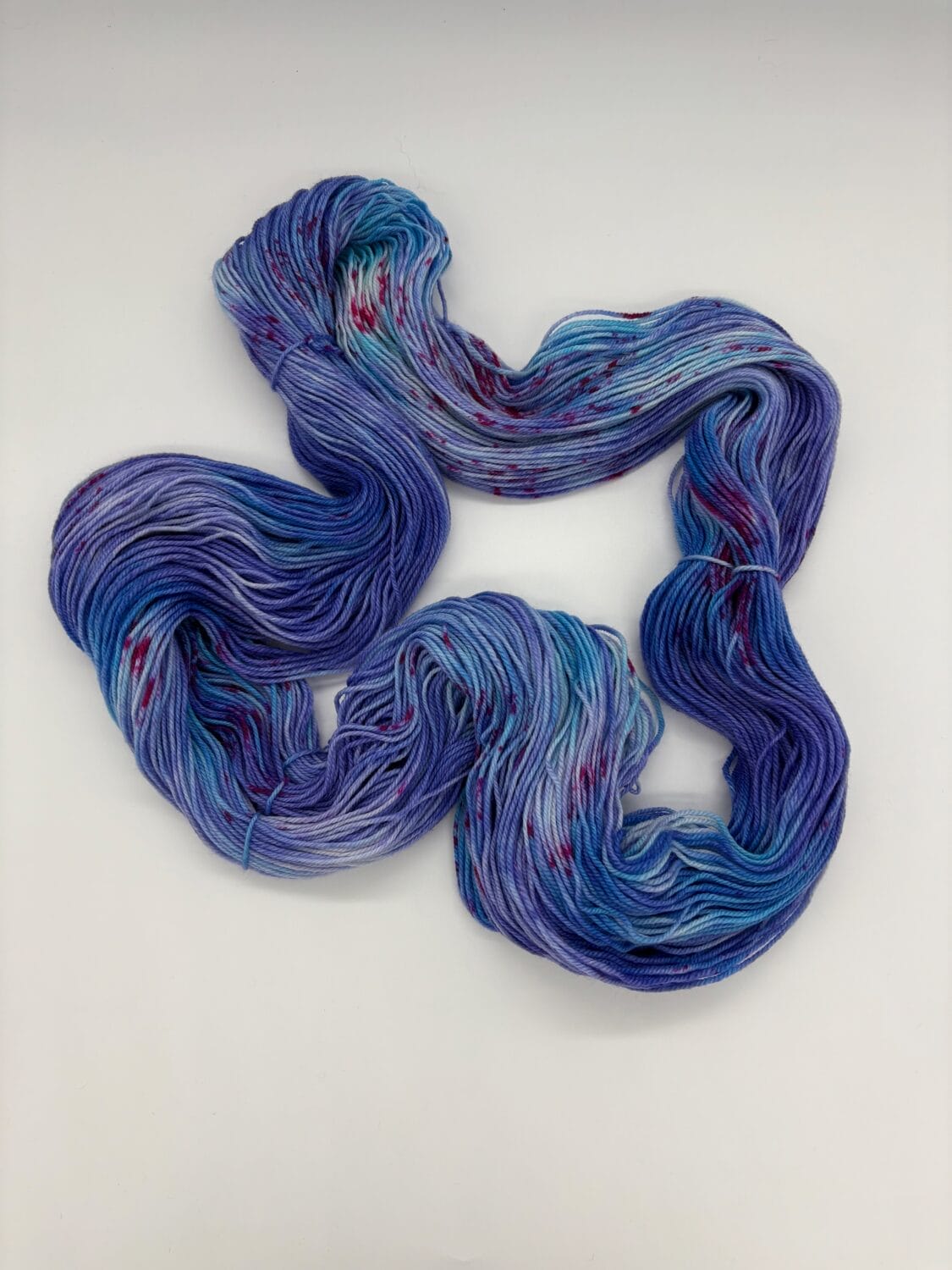 Introducing Fairy Godmother, a spellbinding hand-dyed yarn by Nerds With Needles in Nova Scotia. Inspired by the magic and whimsy of fairy tales, this enchanting skein blends dreamy shades of violet, periwinkle, and turquoise, with delicate splashes of berry and wine, evoking the twirl of a wand and a shimmer of stardust.