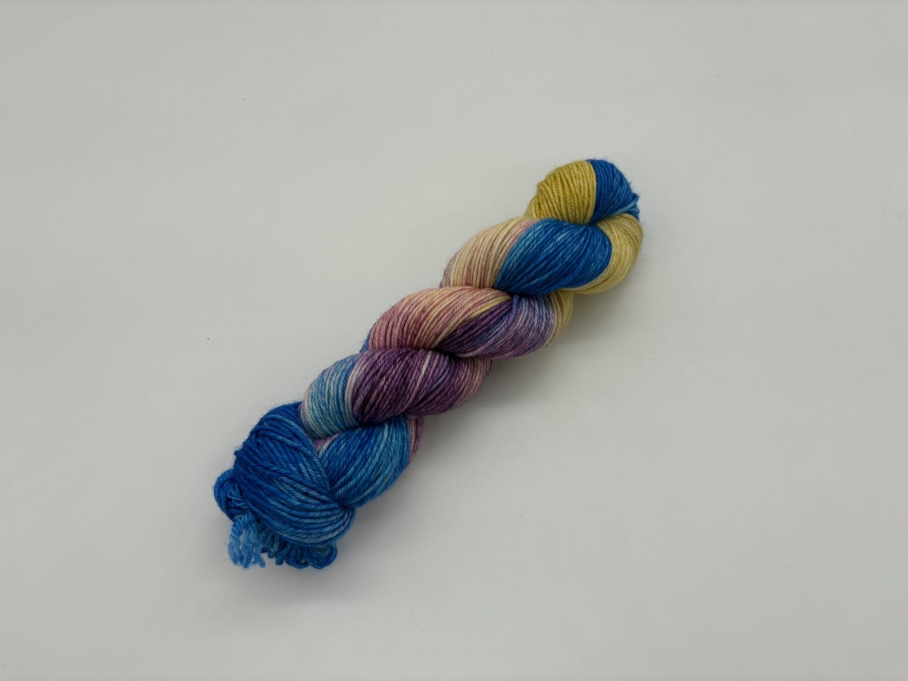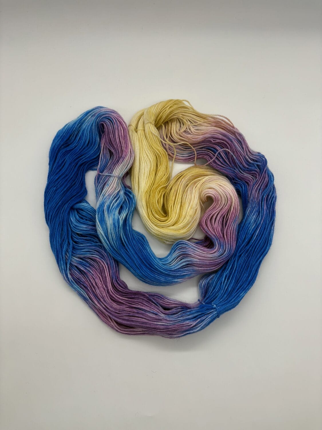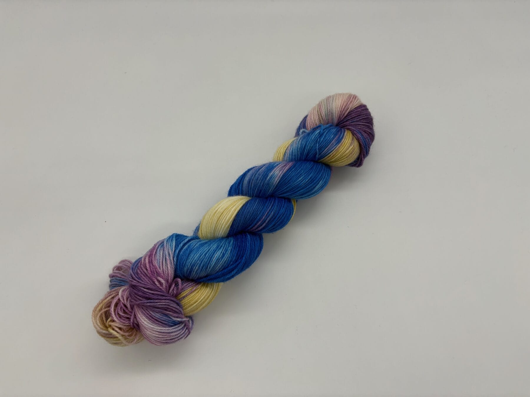 Introducing Loony Wisdom, a whimsical hand-dyed yarn by Nerds With Needles in Nova Scotia, inspired by the delightfully eccentric Luna Lovegood. This enchanting skein blends dreamy blues, soft lilacs, buttery yellows, and delicate ivory, capturing Luna’s ethereal essence and unique way of seeing the world.