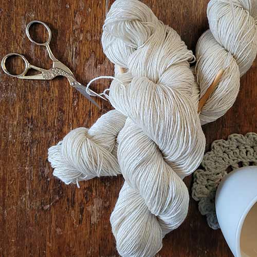 A beautiful blend of Superwash Merino, Nylon, and Silk.
