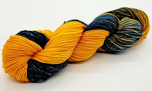 Unleash your inner warrior with My Own Hero, a bold and adventurous hand-dyed yarn by Nerds With Needles in Nova Scotia. Inspired by the fearless Merida from Brave, this striking skein intertwines deep, stormy blues with fiery golden hues—reflecting her untamed spirit, flowing red curls, and the Scottish Highlands she calls home.