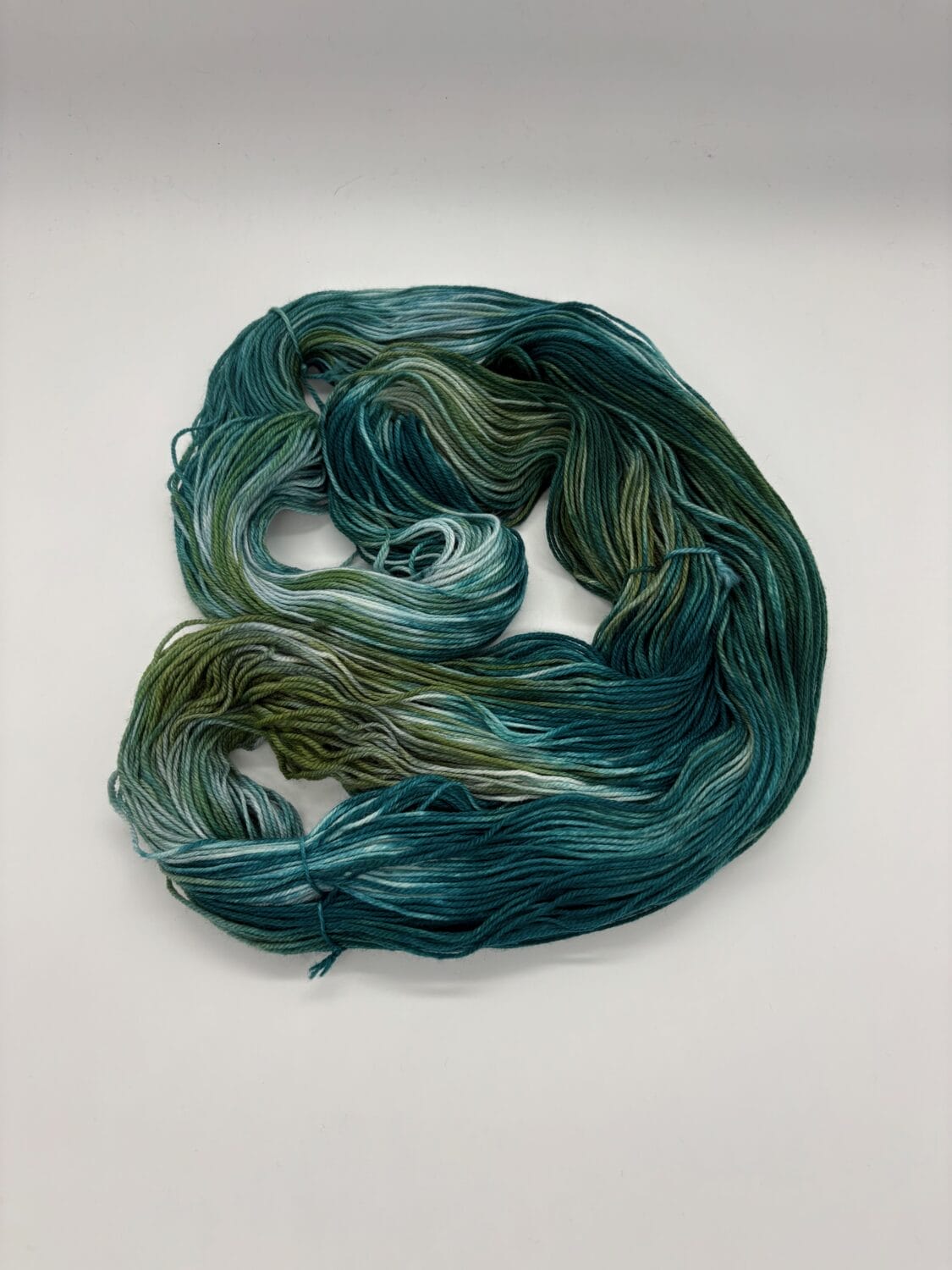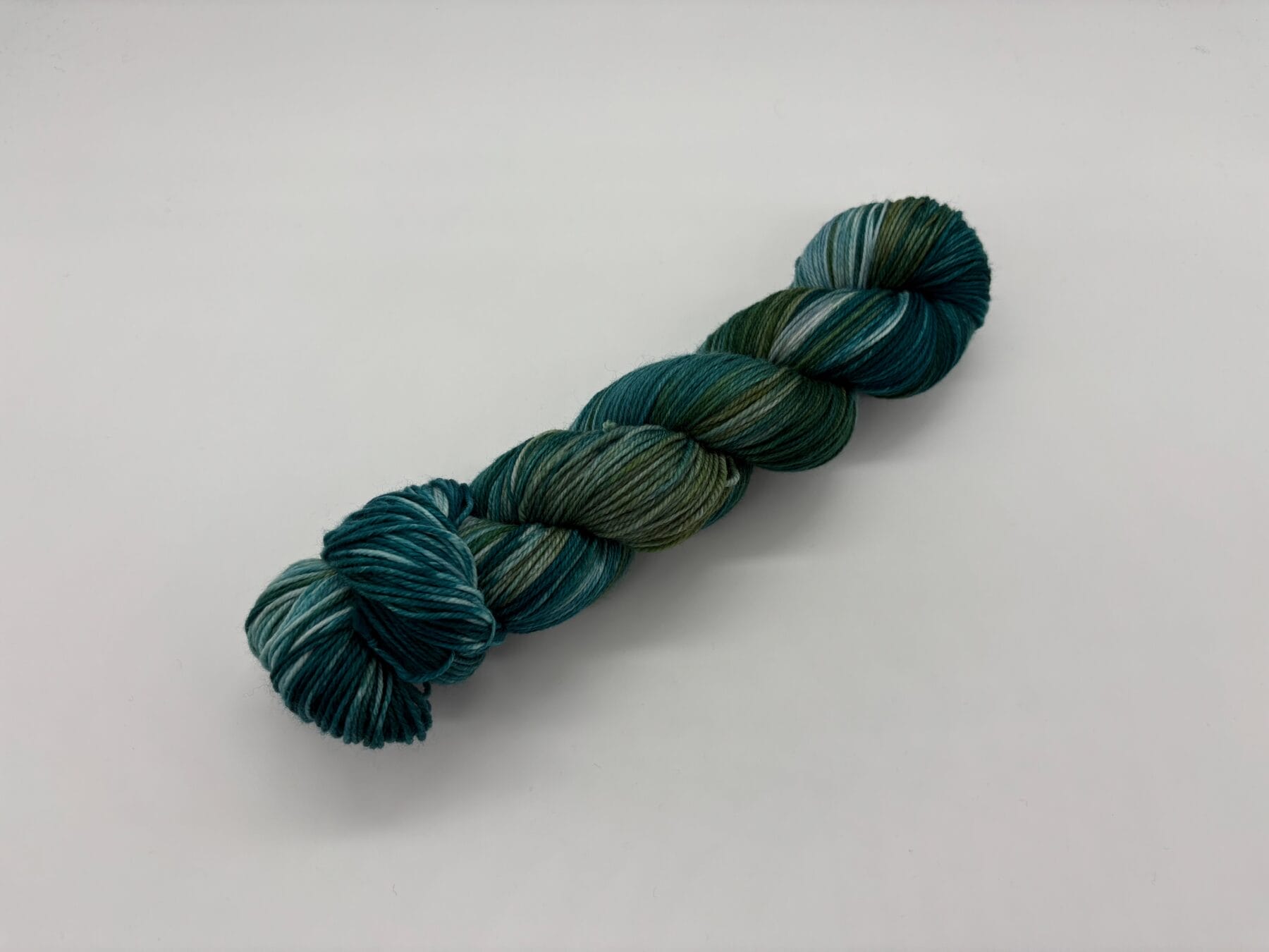 Razorleaf is a lush, hand-dyed yarn by Nerds With Needles in Nova Scotia, inspired by everyone’s favorite Grass-type starter—Bulbasaur! This skein captures the essence of the beloved Pokémon with rich shades of teal, deep forest green, and soft mossy hues, blending together like the leaves of a sunlit jungle.