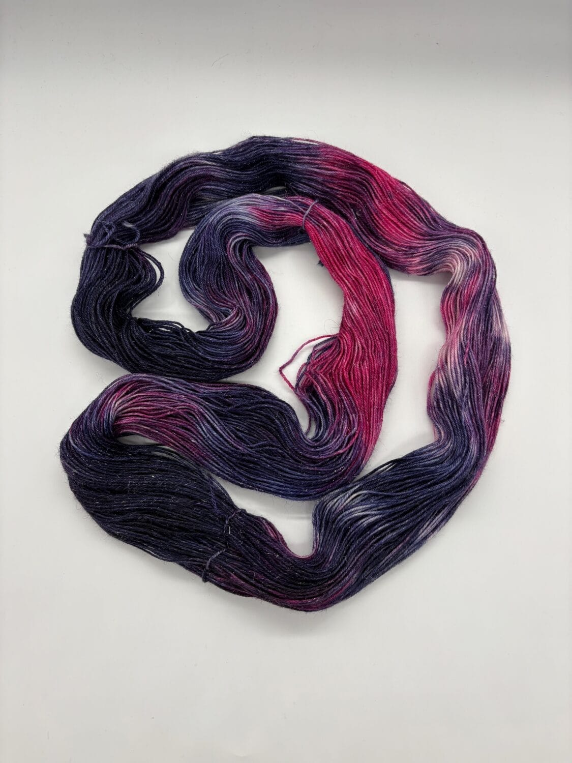 Step into a world of magic with Sparkle Pony, a whimsical hand-dyed yarn from Nerds With Needles in Nova Scotia. Inspired by Twilight Sparkle from My Little Pony, this enchanting colorway captures her brilliance and charm with rich purples, soft lavenders, and flashes of pink and indigo. Each skein is lovingly dyed by hand, creating a one-of-a-kind mix that shines with friendship and creativity. Perfect for shawls, accessories, or cozy knits that deserve a touch of sparkle, Sparkle Pony brings a little magic to every stitch.